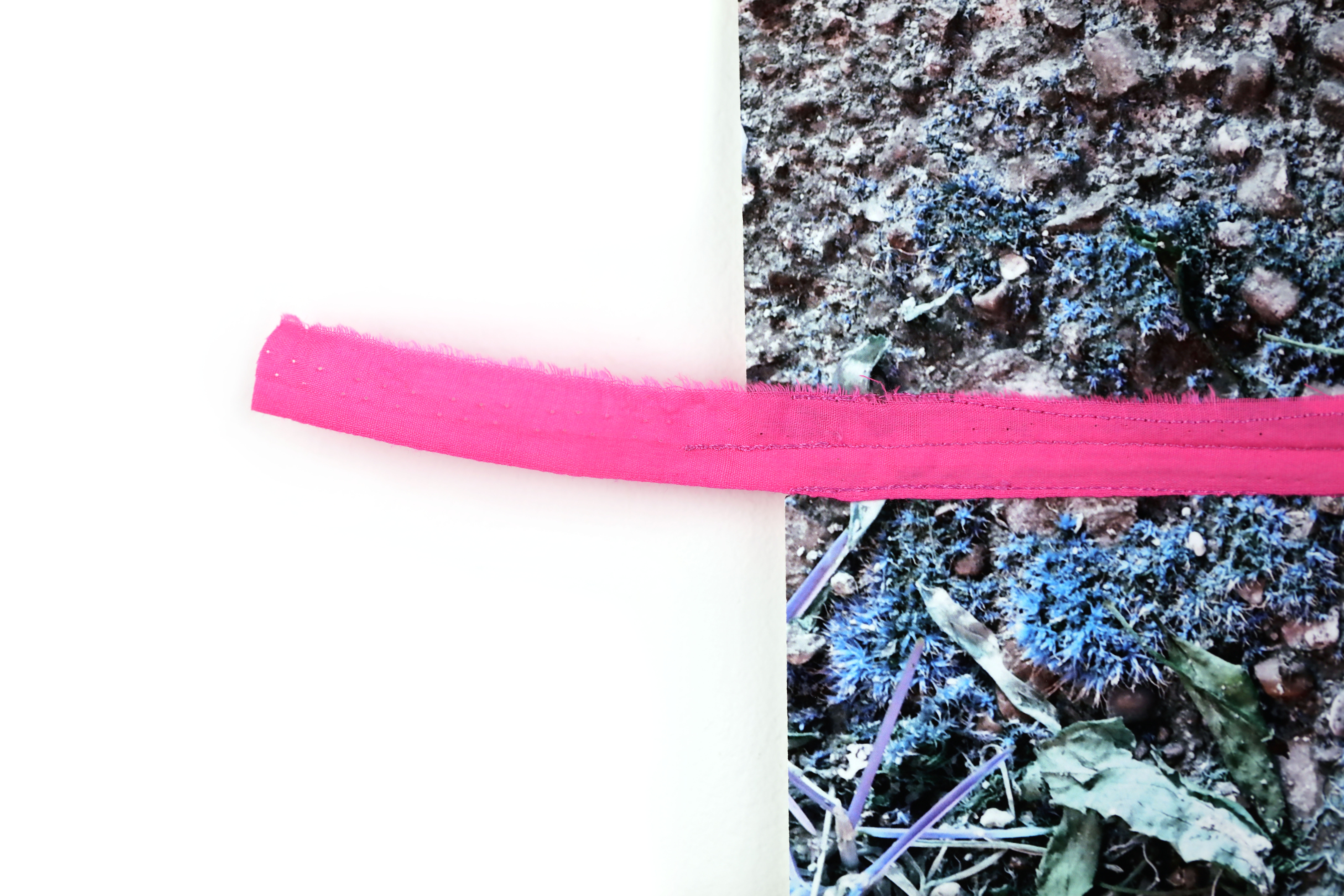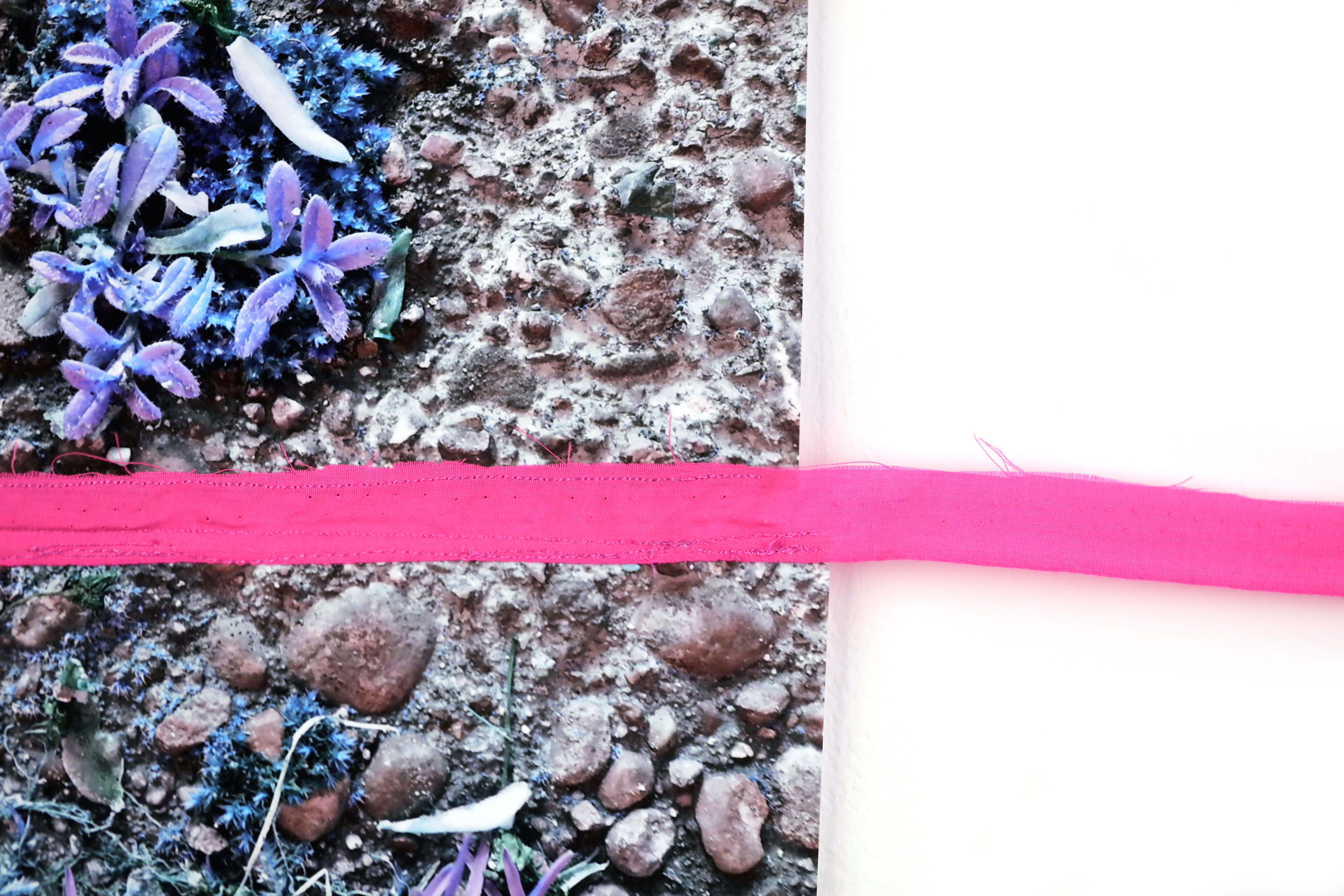 Fabric machine-stitched onto digitally altered photograph